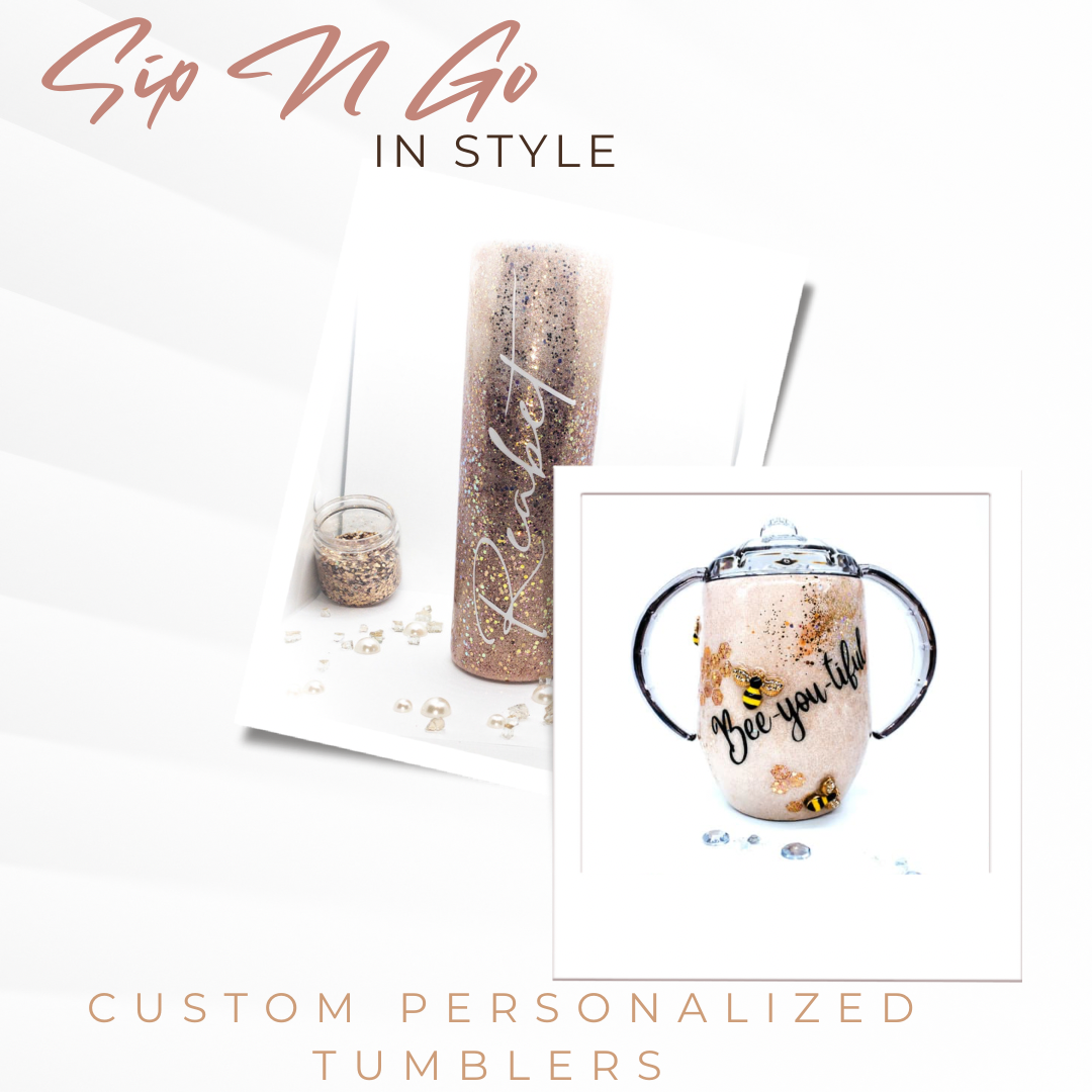 Custom Personalized Rose Gold Glitter Tumbler Cup With Lid and Straw