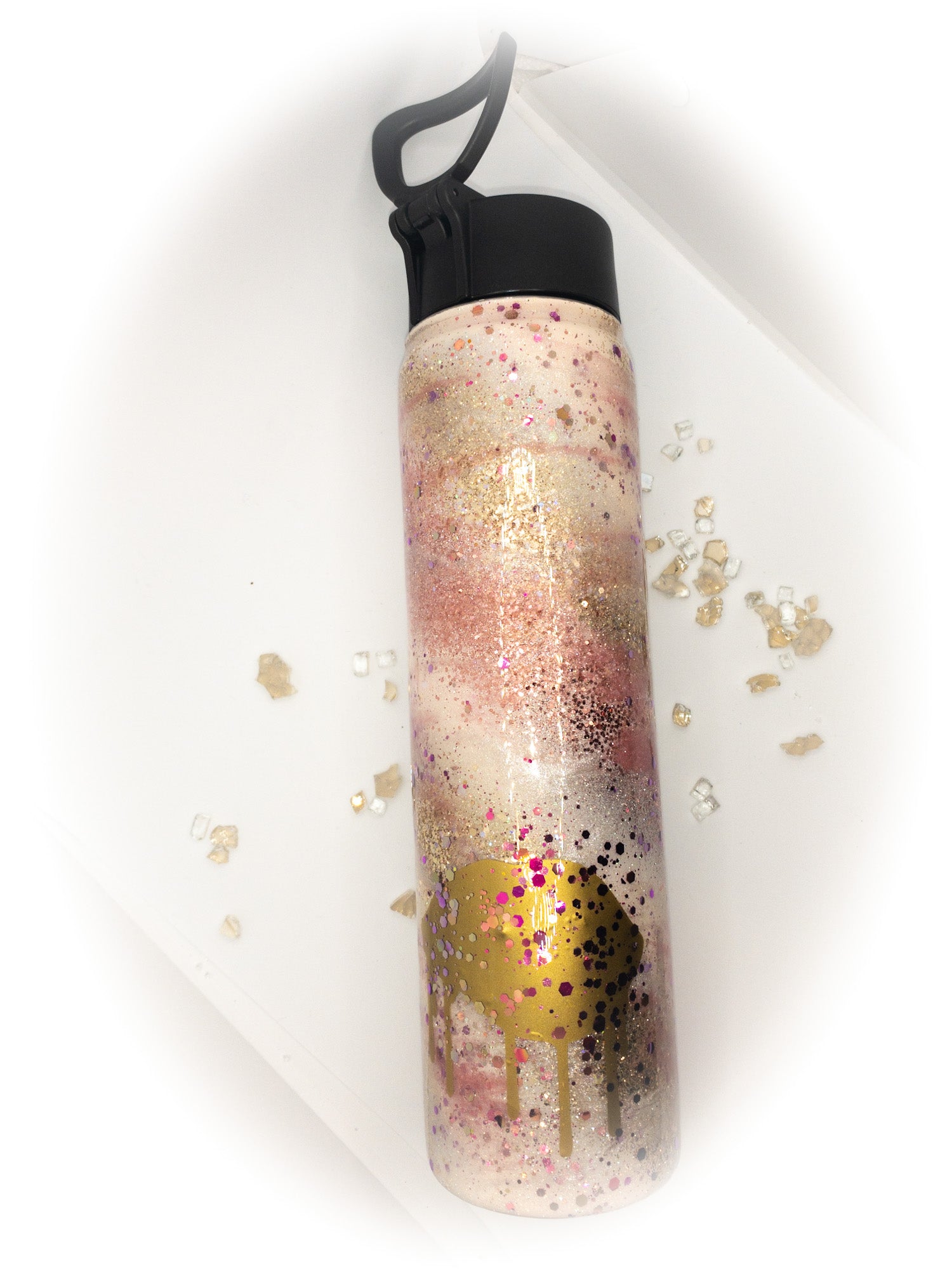 25oz Custom Personalized Stainless Steel Insulated Pink and Gold Swirl Glitter Water Bottle. A safe and stylish way of keeping drinks hot or cold for hours. All cups are made to order and personalized at customers request. Multiple styles and sizes available. PLEASE NOTE SWIRL PATTERN WILL VARY.
