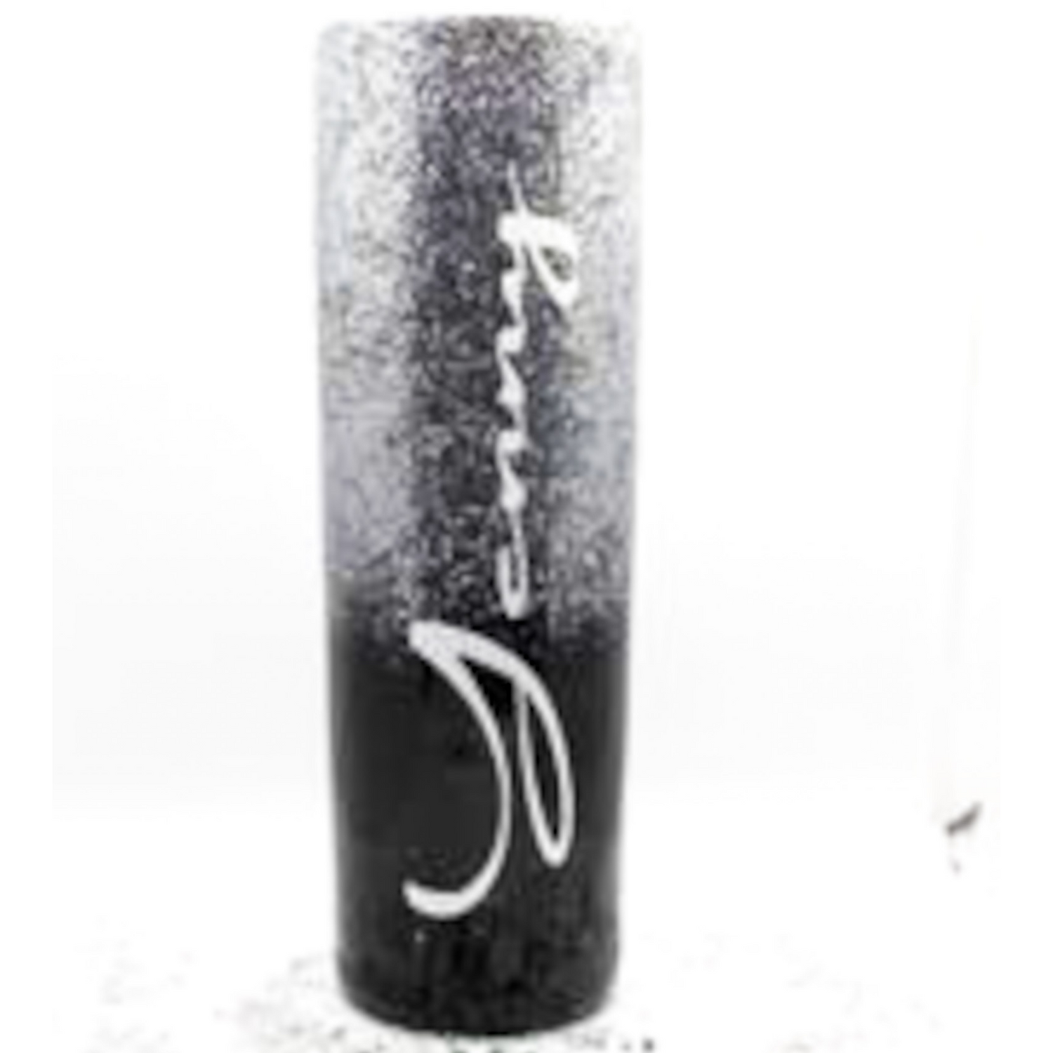30oz Custom Personalized Stainless Steel Insulated Silver and Black Glitter Tumbler Cup With Straw And Lid. A safe and stylish way of keeping drinks hot or cold for hours. All cups are made to order and personalized at customers request.