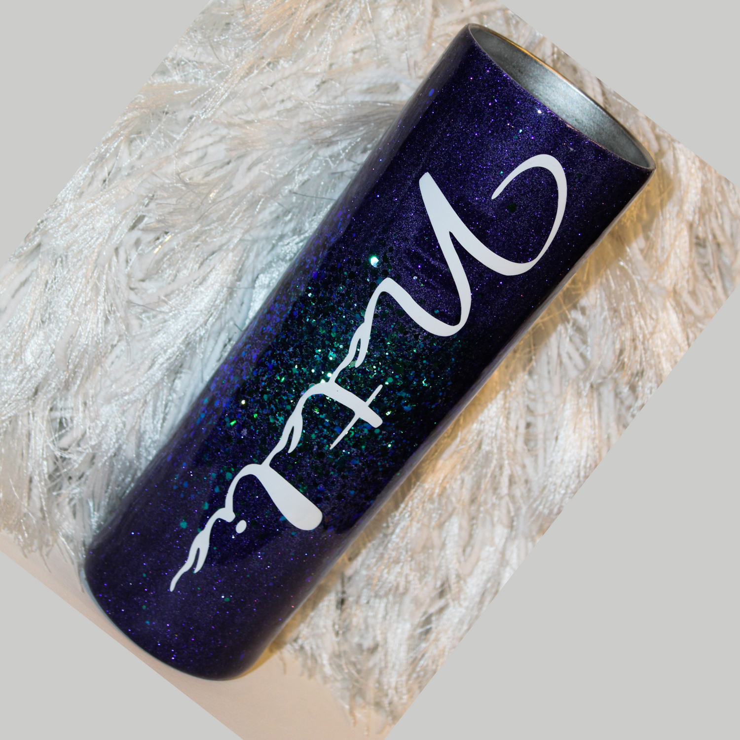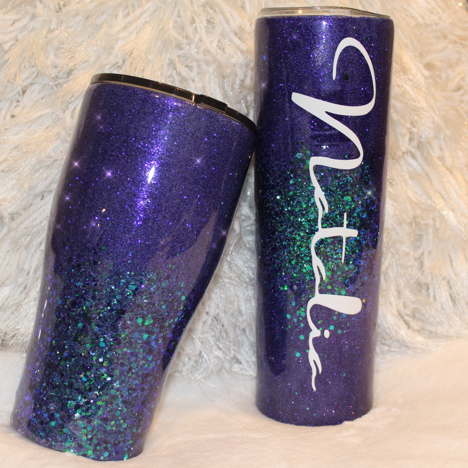 30oz Custom Personalized Stainless Steel Insulated Purple Holographic Glitter Tumbler Cup With Straw And Lid. A safe and stylish way of keeping drinks hot or cold for hours. A combination of glitters creating a layered Ombre effect. All cups are made to order and personalized at customers request.