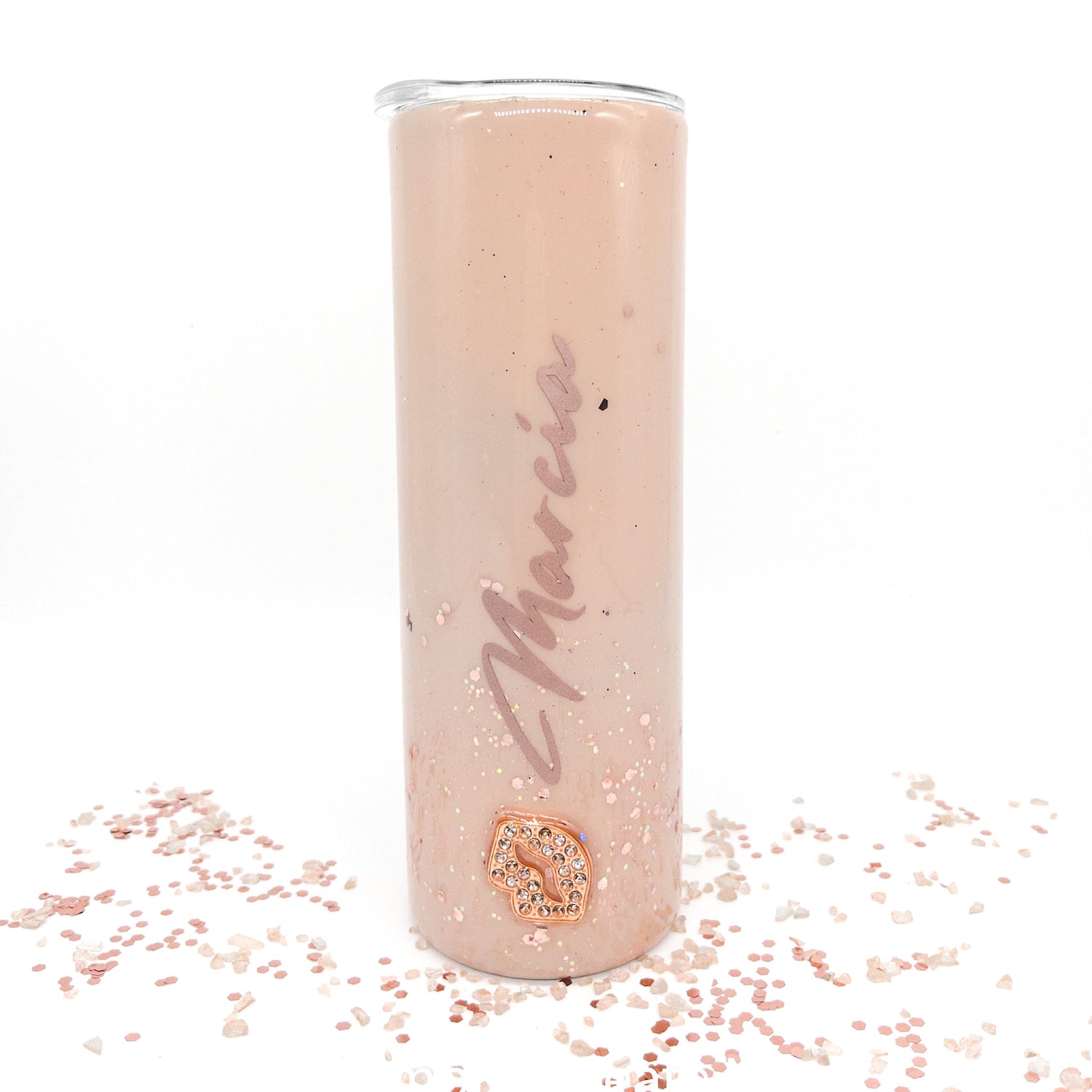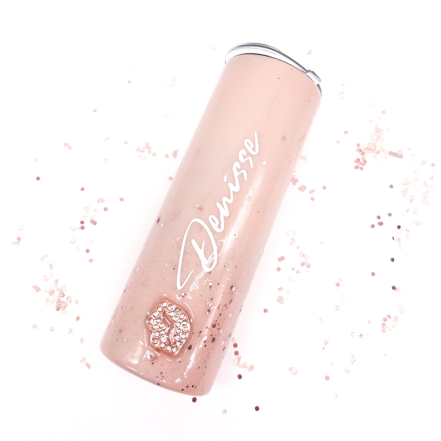 Custom Personalized Rose Gold Rhinestone Glitter Tumbler Cup With Lid