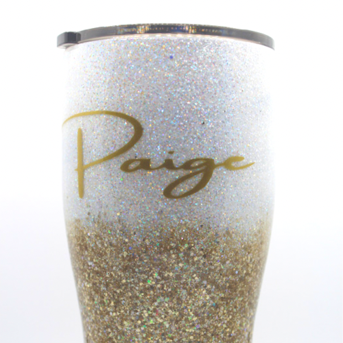 Custom Personalized Gold And White Ombre Glitter Tumbler
