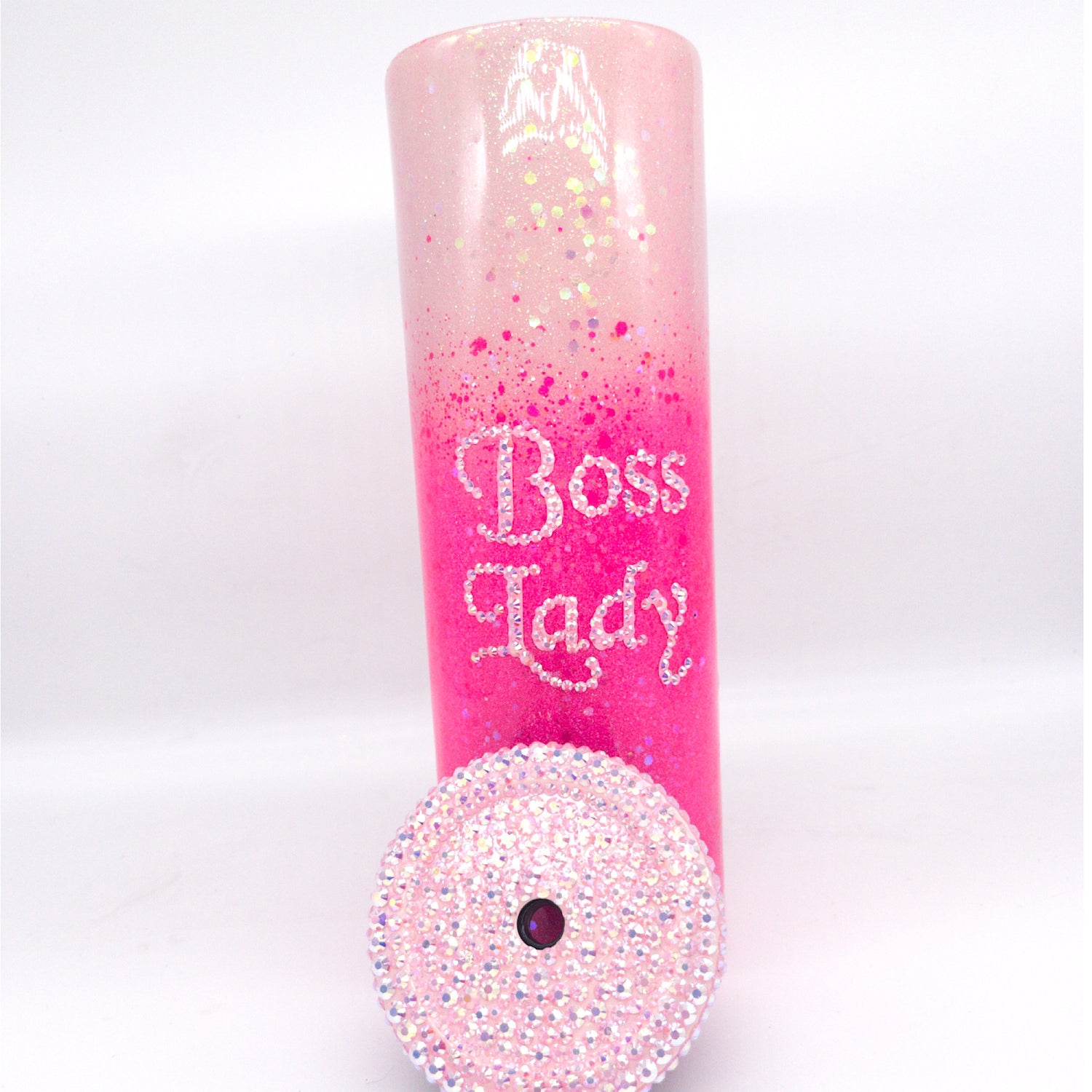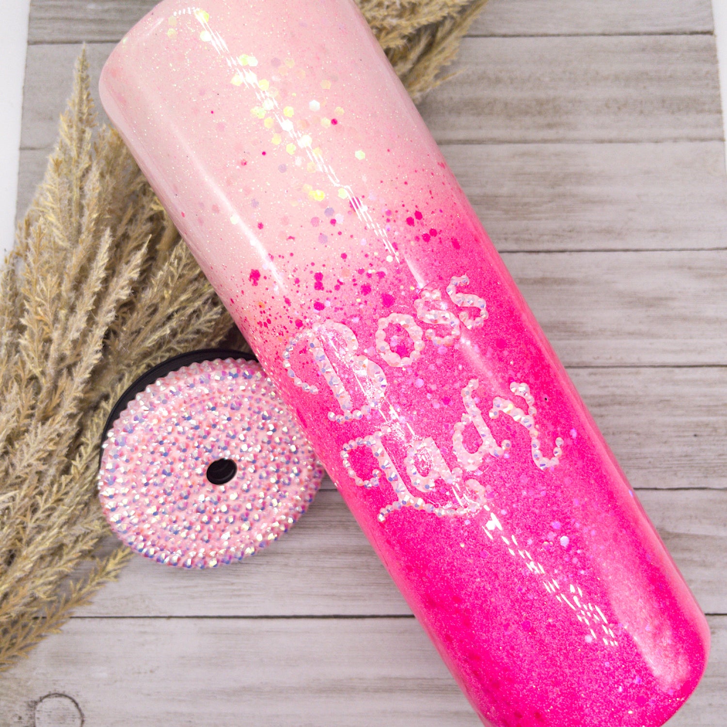 30oz Custom Personalized Stainless Steel Insulated Pink Rhinestone Ombre Glitter Tumbler Cup With Straw And Lid. A safe and stylish way of keeping drinks hot or cold for hours. All cups are made to order and personalized at customers request. Multiple styles and sizes available.