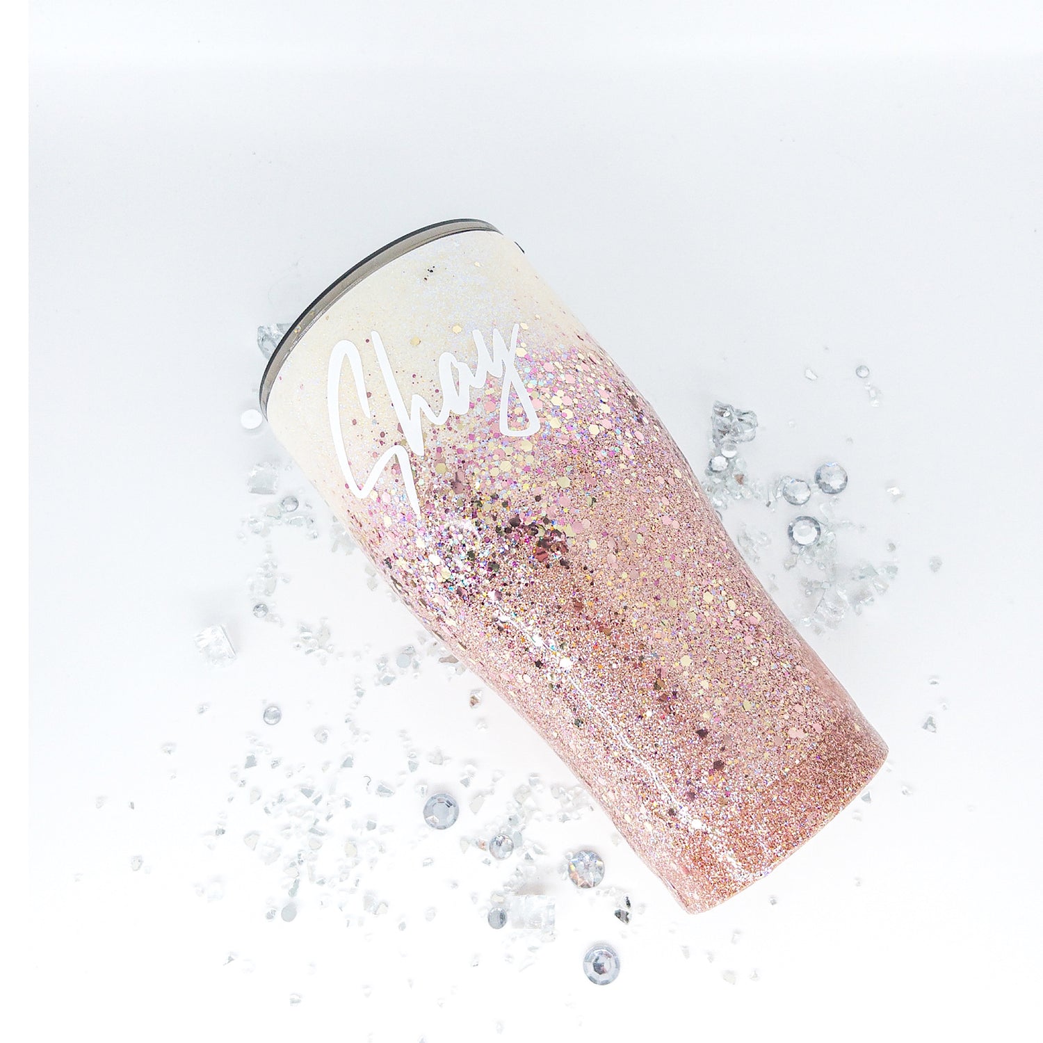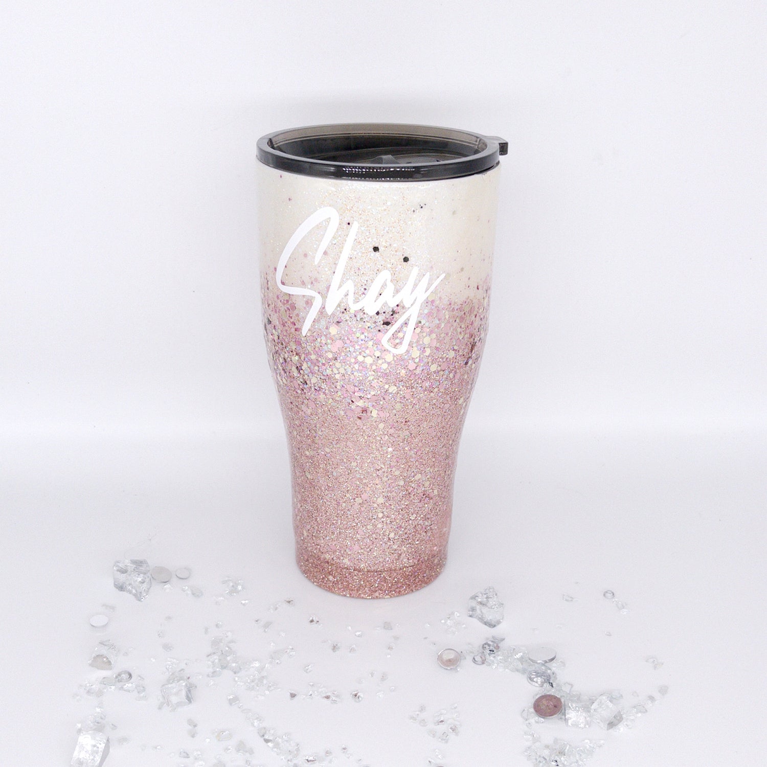 30oz Custom Personalized Stainless Steel Rose Gold Cream Glitter Tumbler Cup With Straw And Lid. A safe and stylish way of enjoying drinks hot or cold for hours. All cups are made to order and personalized at customers request. Multiple styles and sizes available.