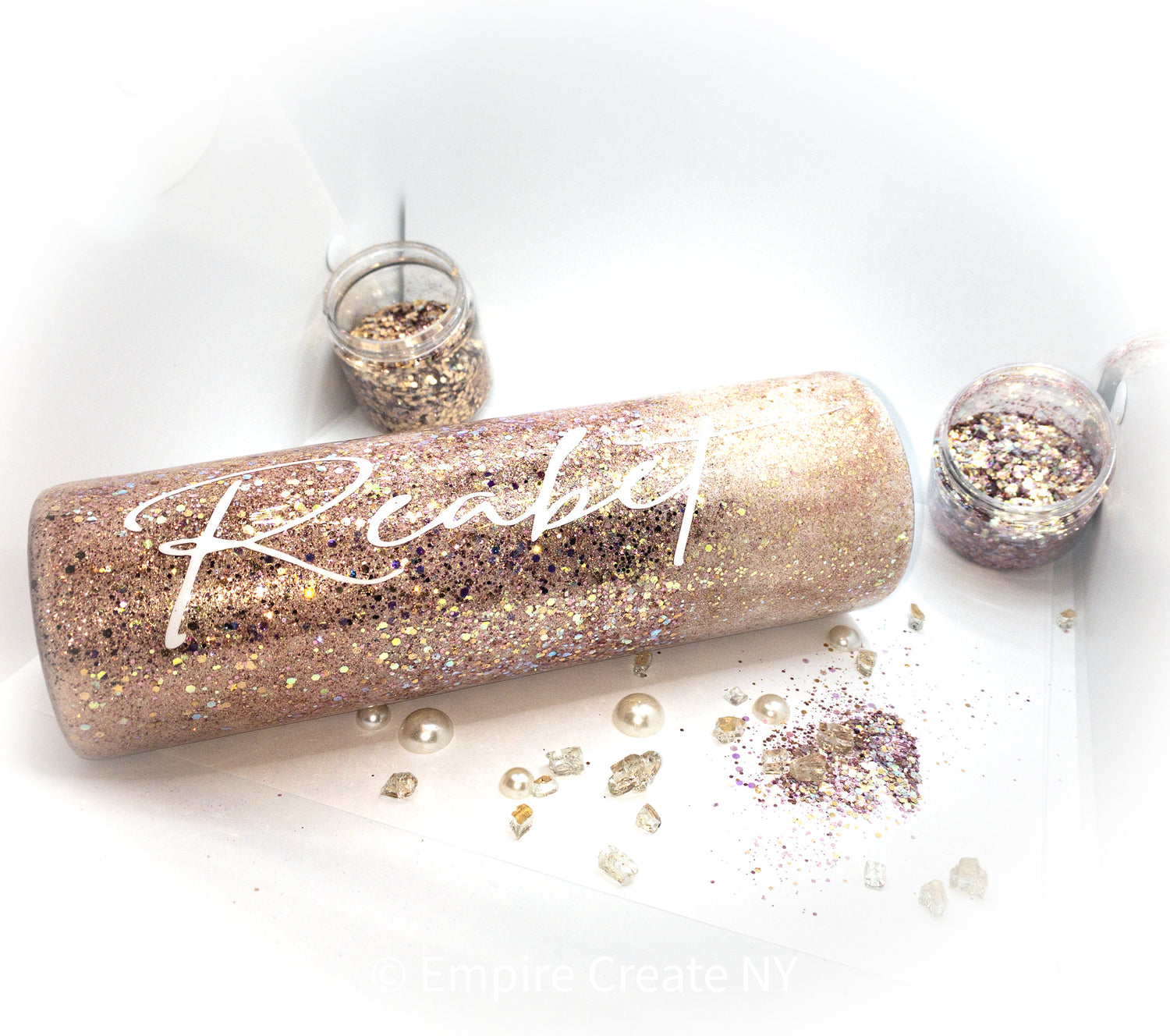 Custom Personalized Rose Gold Glitter Tumbler With Lid And Straw