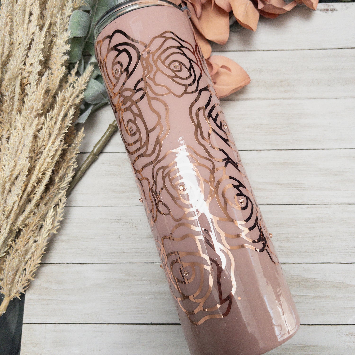 Custom Personalized Rose Gold Glitter Rhinestone Tumbler Cup With Lid and Straw
