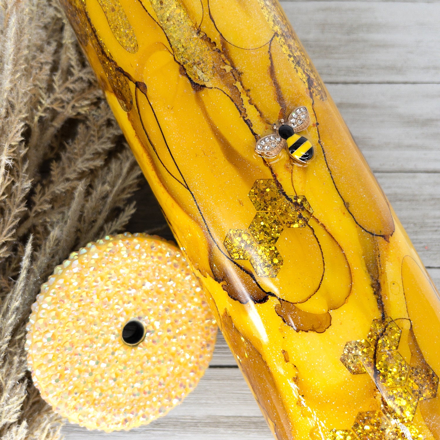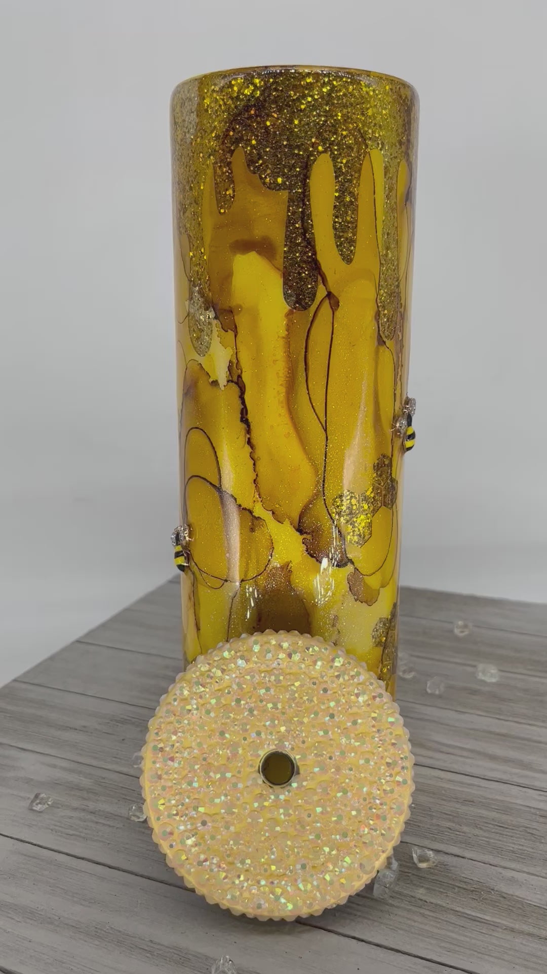 Honey Bee Tumbler with 3D Bees and Rhinestone Lid