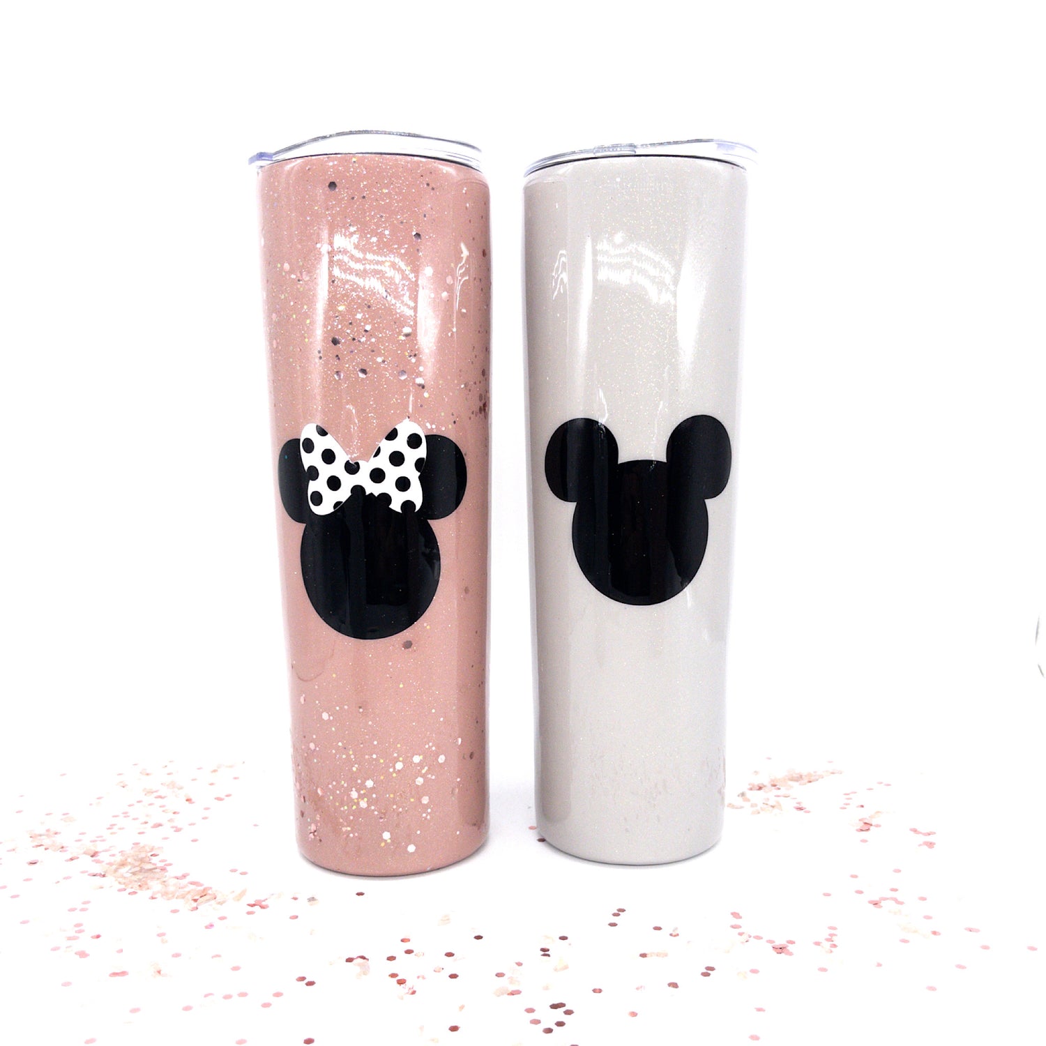 Custom Personalized Stainless Steel Mickey and Minnie Tumbler Cup With Straw And Lid. A safe and stylish way of enjoying drinks hot or cold for hours. All cups are made to order and personalized at customers request. Multiple styles and sizes available.