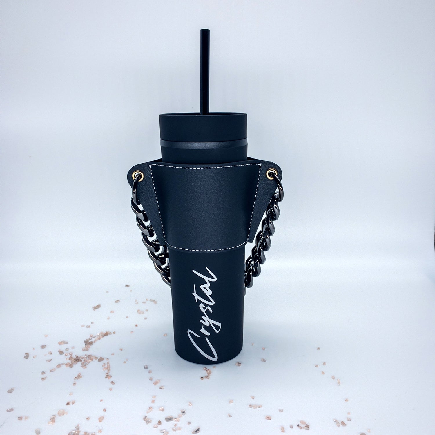 ** COMBO** Personalized Matte Black Acrylic Tumbler AND Reusable Black Cup Sleeve Purse