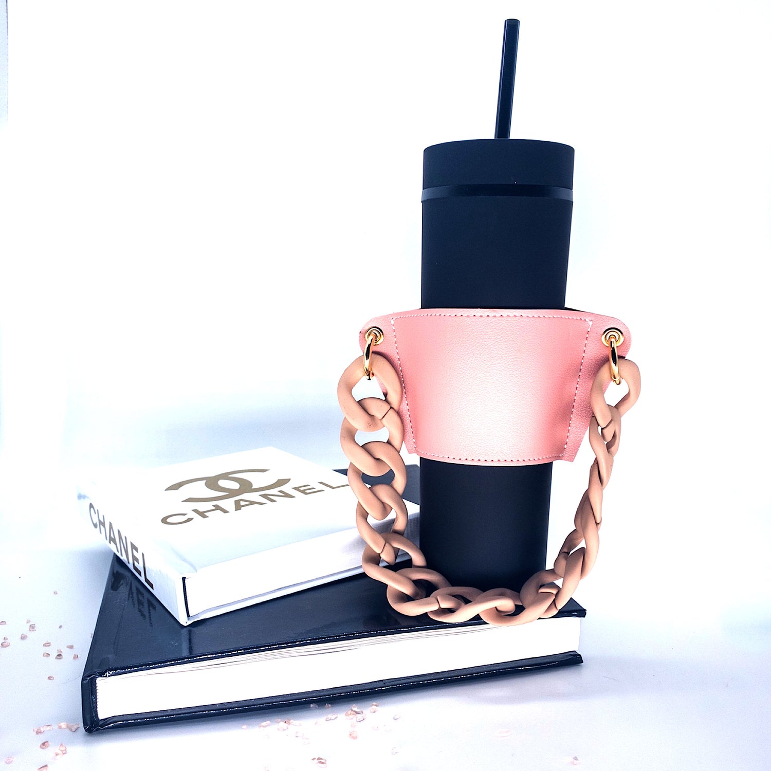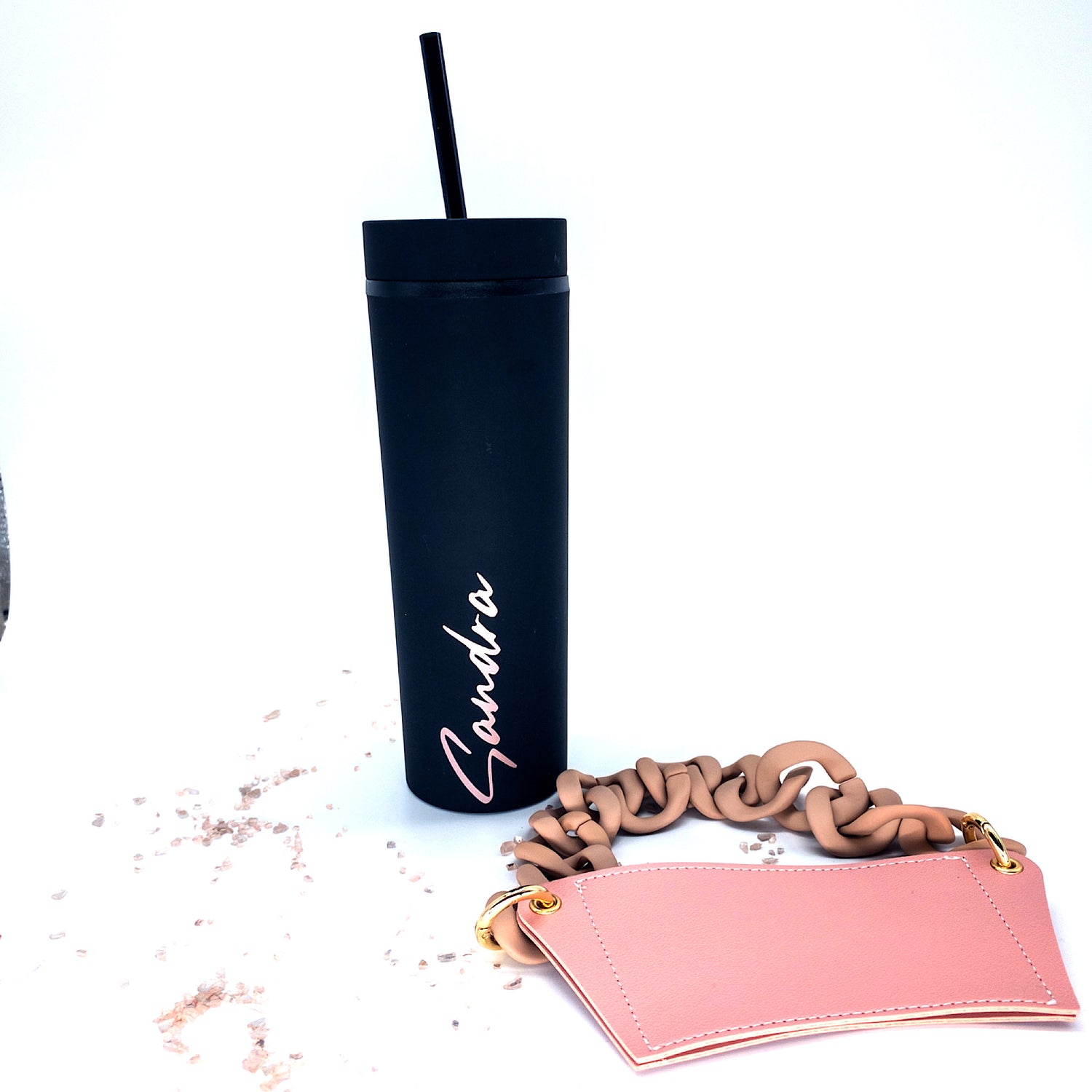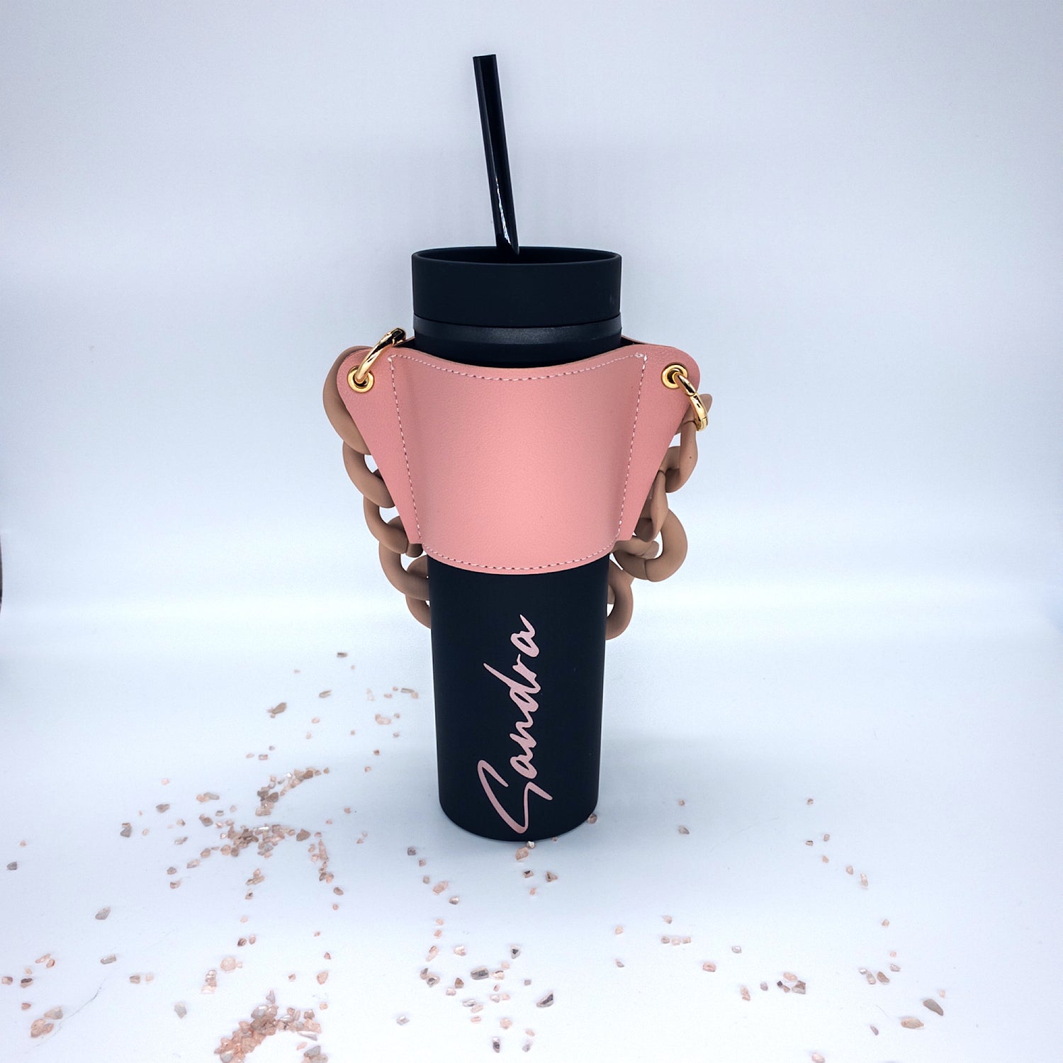 **COMBO**Personalized Matte Black Acrylic Tumbler AND Reusable Pink Cup Sleeve Purse