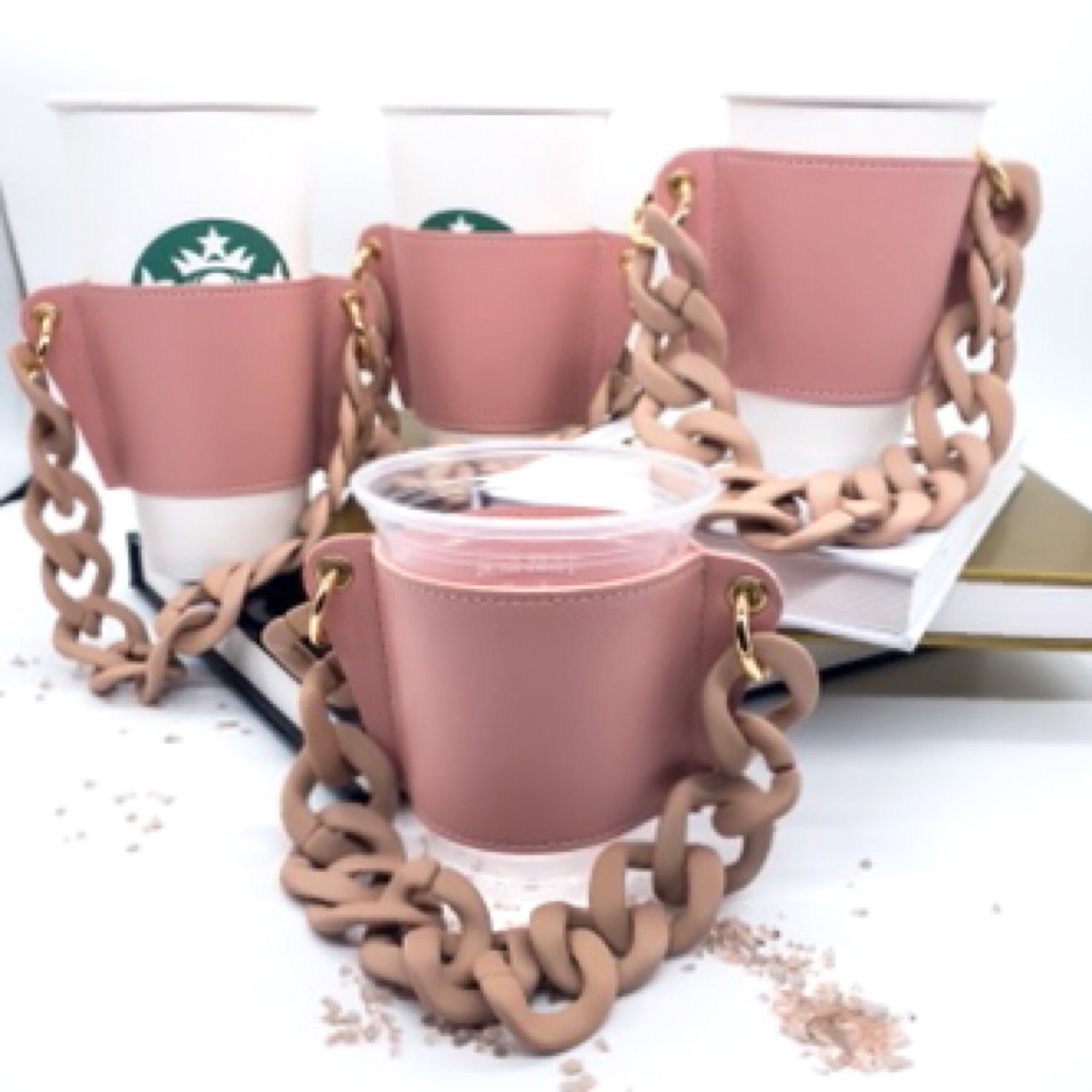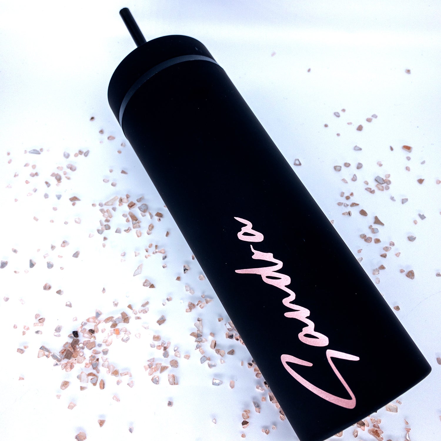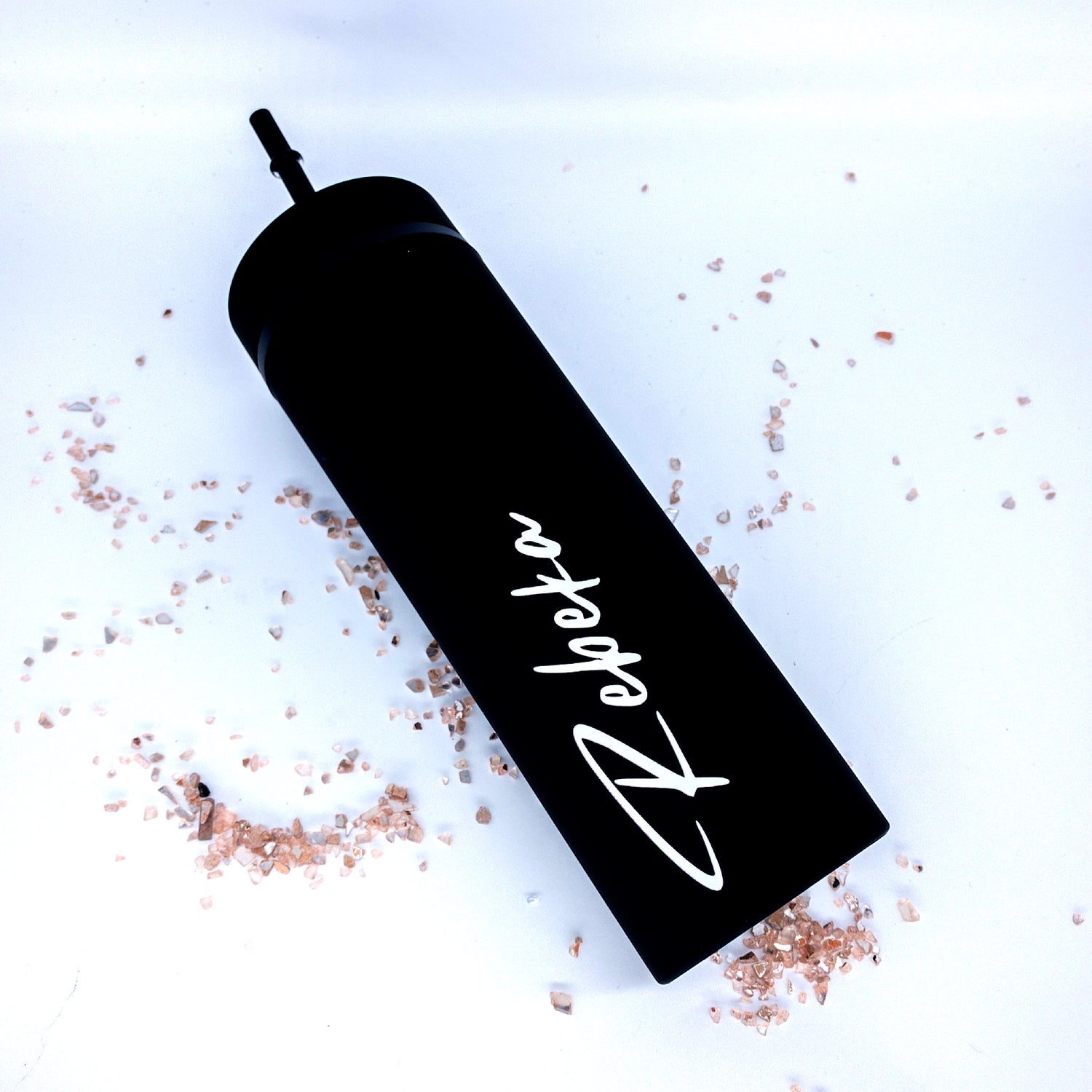 **COMBO**Personalized Matte Black Acrylic Tumbler AND Reusable Pink Cup Sleeve Purse